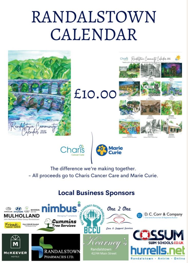 Our beautiful Randalstown 2026 Community Calendar is making its way into local shops for sale this week!